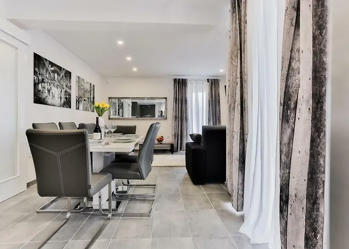 Objekt se nalazi na 10 minuta vožnje od Punta Planke. Centar grada udaljen je samo 2 km, a zračna luka Split udaljena je 30 km od apartmana. Oko 25-minuta hoda od apartmana Villa Scandalli nalazi se plaža Stari Trogir.